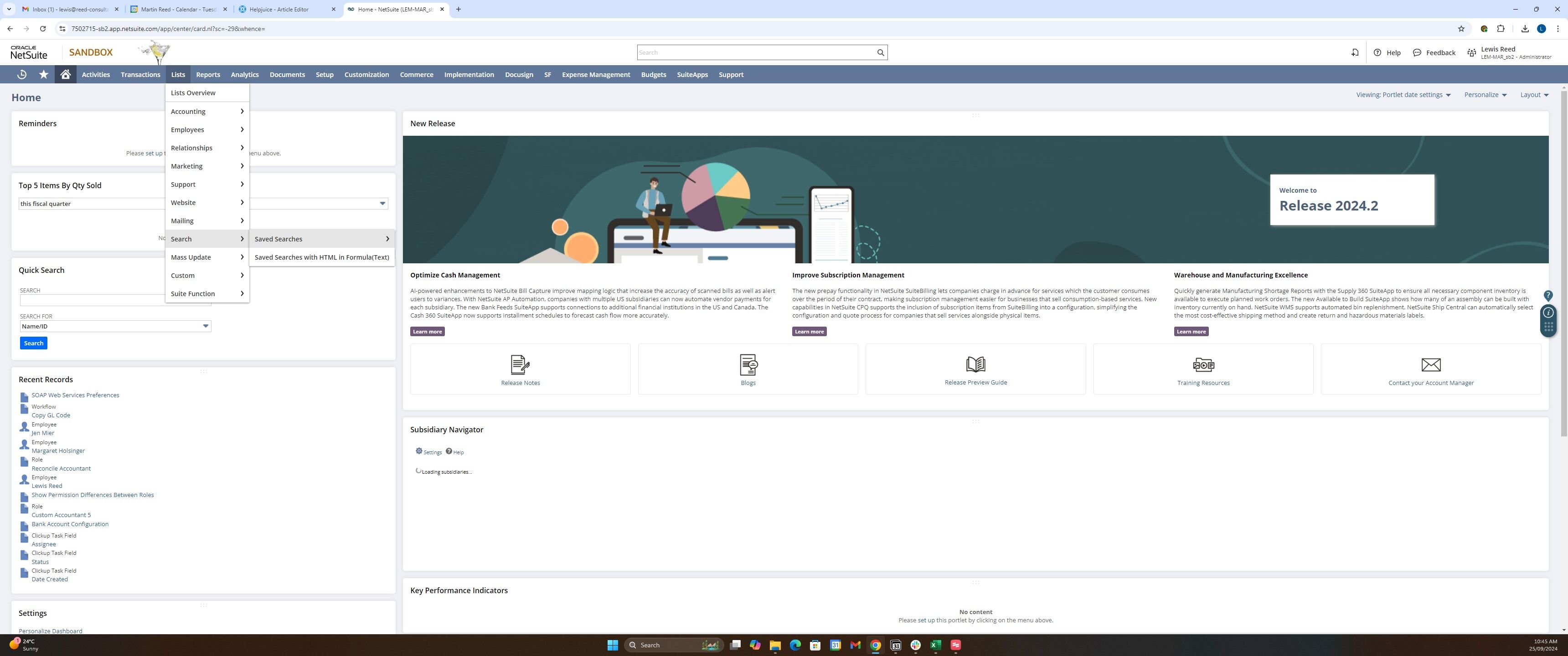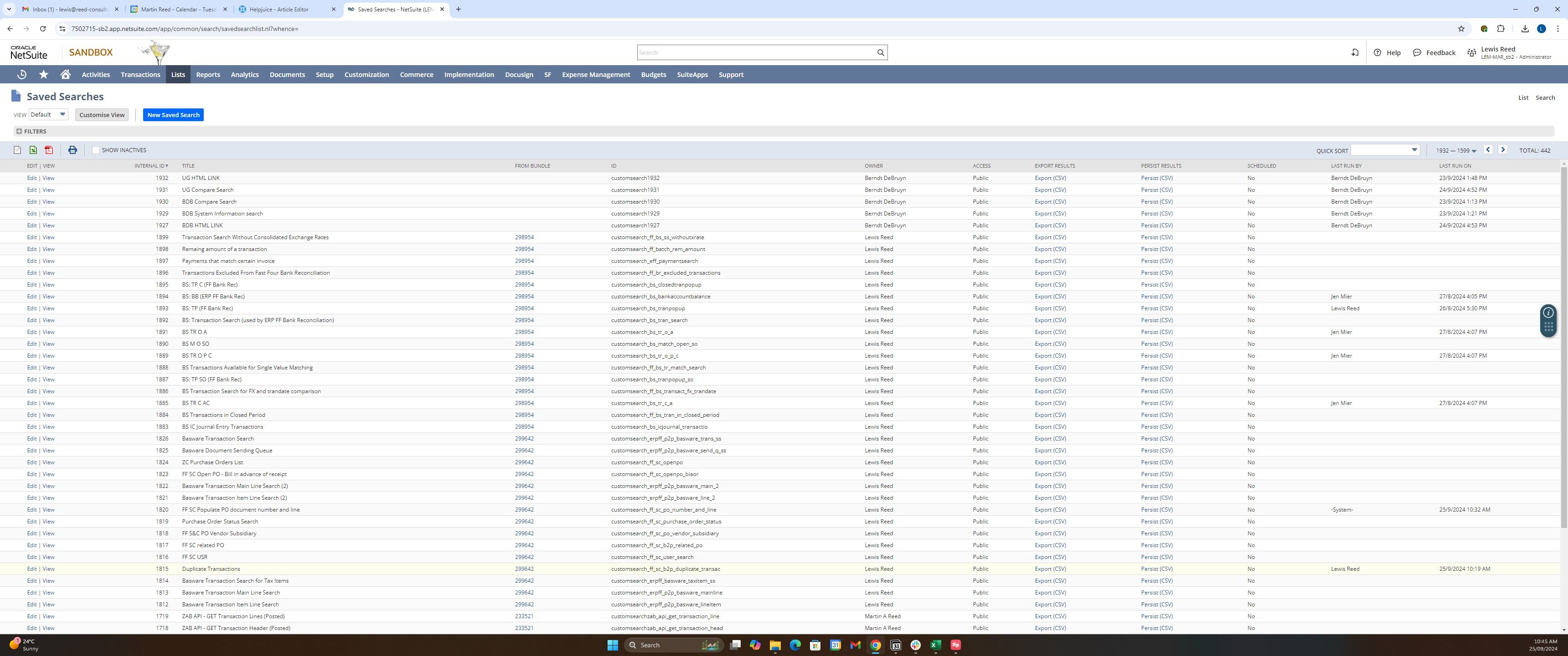1. There are a few ways to identify the internal ID of a saved search. The first option is to view the saved search in the list of saved searches. Your exact menu path may differ based on your role. In the classic center [[Header Titl]], navigate through Lists > Search > Saved Searches